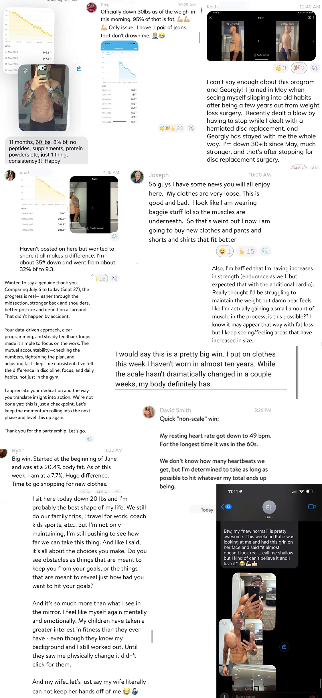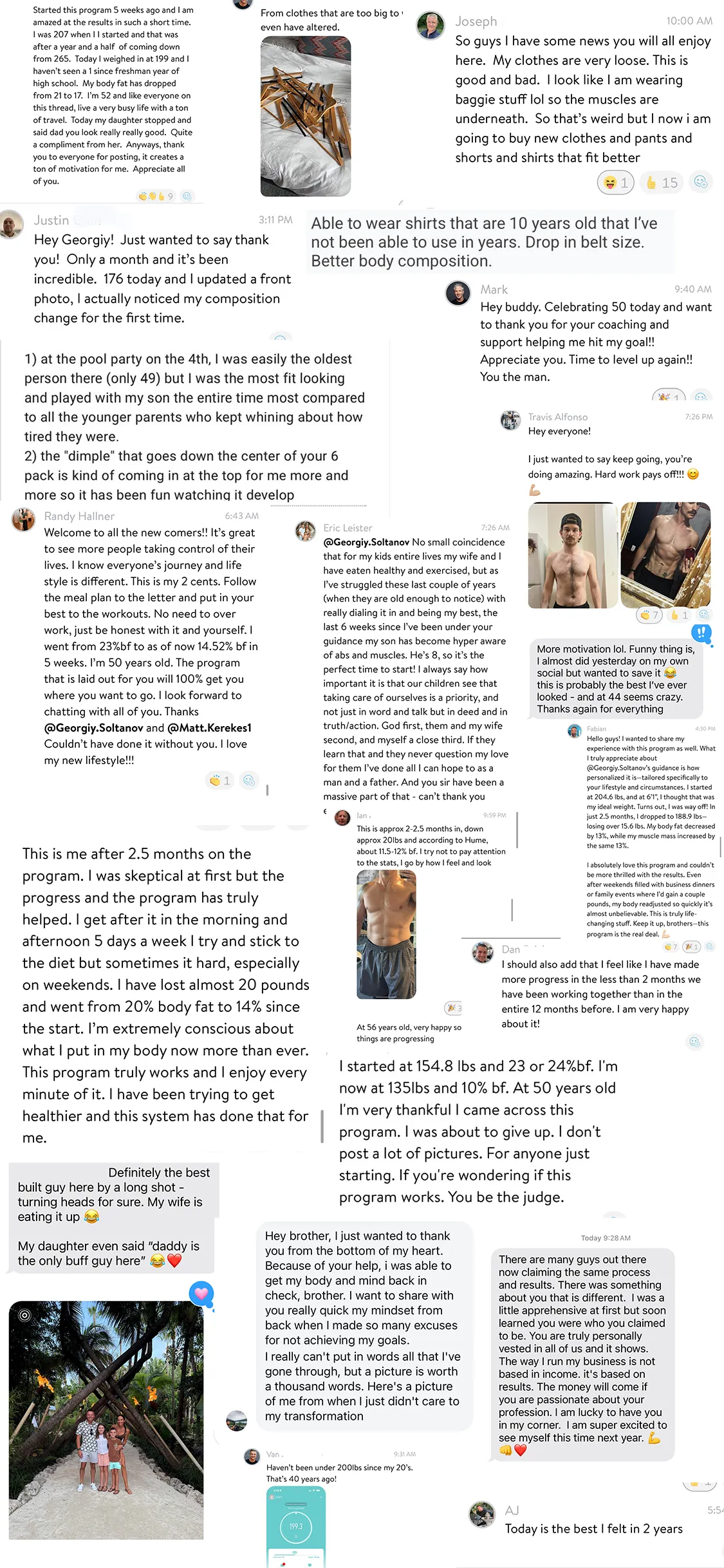 The results you see are the results of specific clients. We do not guarantee you will receive any specific results. You could get better results, worse results, or the same results. We only guarantee that we will give you our tools to help increase the performance of your fitness.